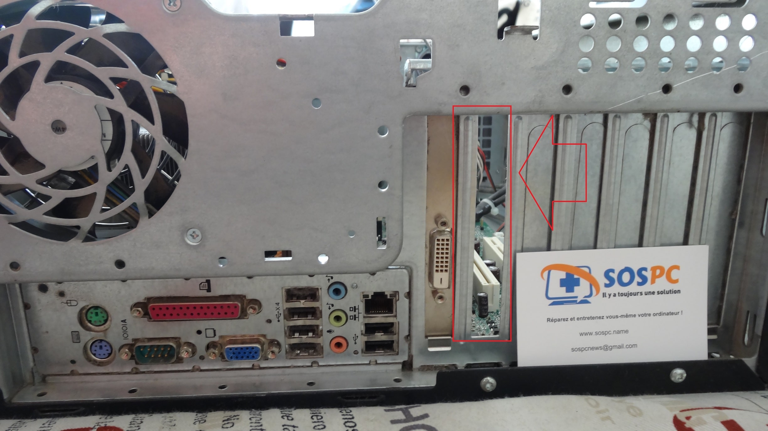 - Repérez l’emplacement Pci express libre, c'est un petit connecteur.