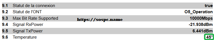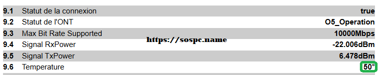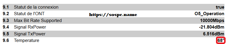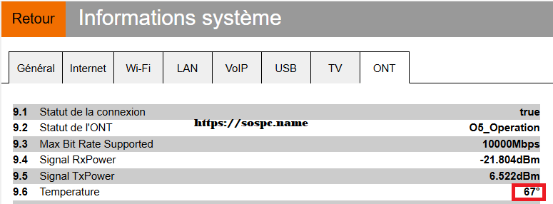 • Voici les mesures collectées via le logiciel d'administration de ma Livebox 7. J'avais à l'origine une température de67°C ! :wacko: