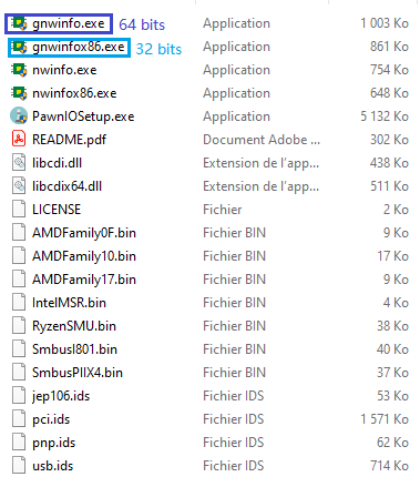 - Sélectionnez à l'intérieur du dossier l'exécutable gnwinfo 32 ou 64 bits en fonction de votre Système d'Exploitation :