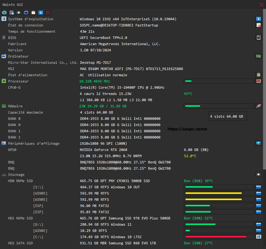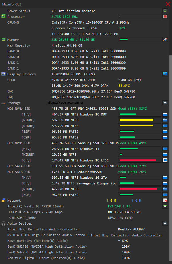 NWinfo est un programme qui vous permet d'obtenir des informations détaillées sur votre Système et ses matériels.