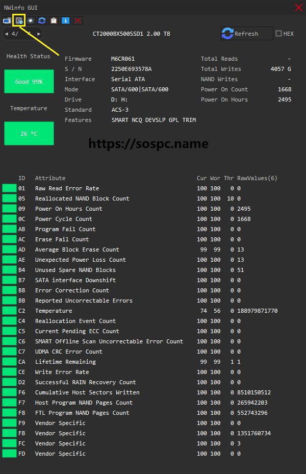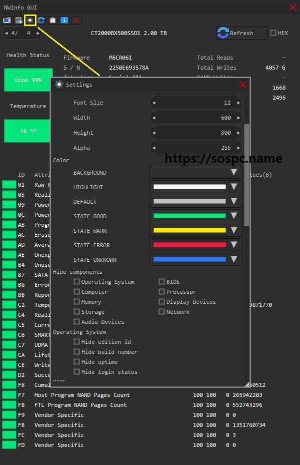 - L'onglet SMART est plus détaillé.